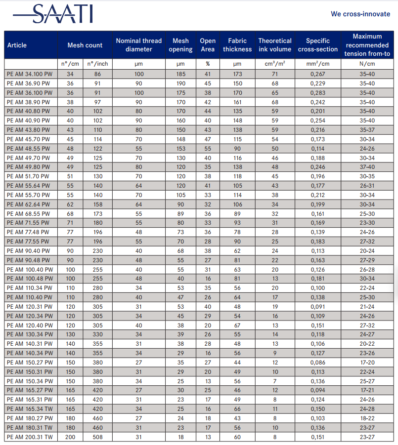 SAATI 망사(이탈리아) / J-MESH 망사(중국)  / 국산망사